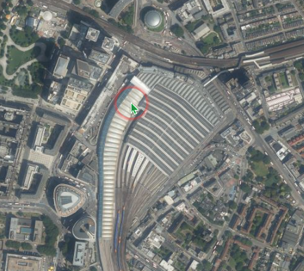 The platforms are on the left-hand side of the above aerial photo, with the cursor marking where I was standing to take the photos.