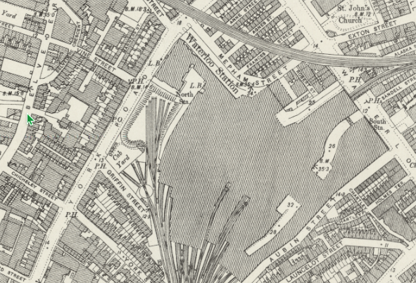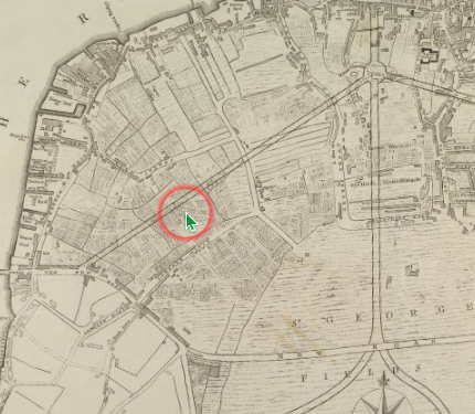 On that subject, and apologies it’s not very clear, but there’s the area at the end of the eighteenth century, with the cursor marking where Waterloo Station is today. It’s fair to say that this south river side of London has changed considerably over the last 200 years.