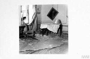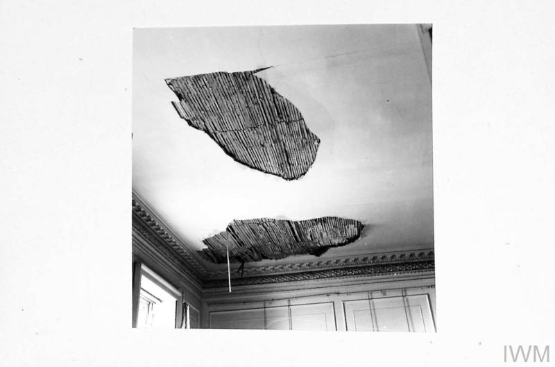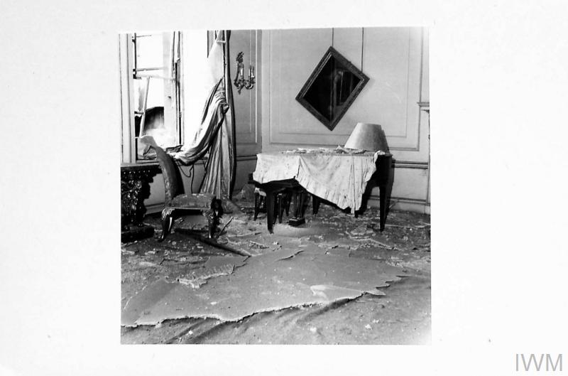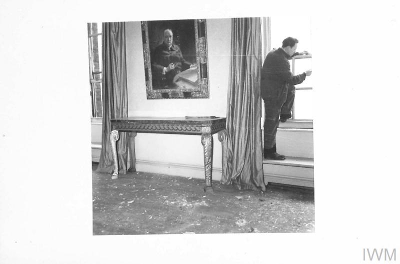The photographer at the time, Captain Horton, noted that although the window was blown out, the photograph of Winston Churchill was left intact.