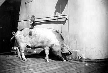 I have to say (write) that this is rather unusual…. Back in the First World War, British sailors from HMS Glasgow saved this pig when the German cruiser Dresden was sunk in Chile as part of the 1914 Battle of the Falkland Islands. They liked the pig and it became the ship’s pet, having a lovely bath every day and, on Sundays, they put an iron cross around its neck. It was named Tirpitz, after the German head of the navy Alfred von Tirpitz.