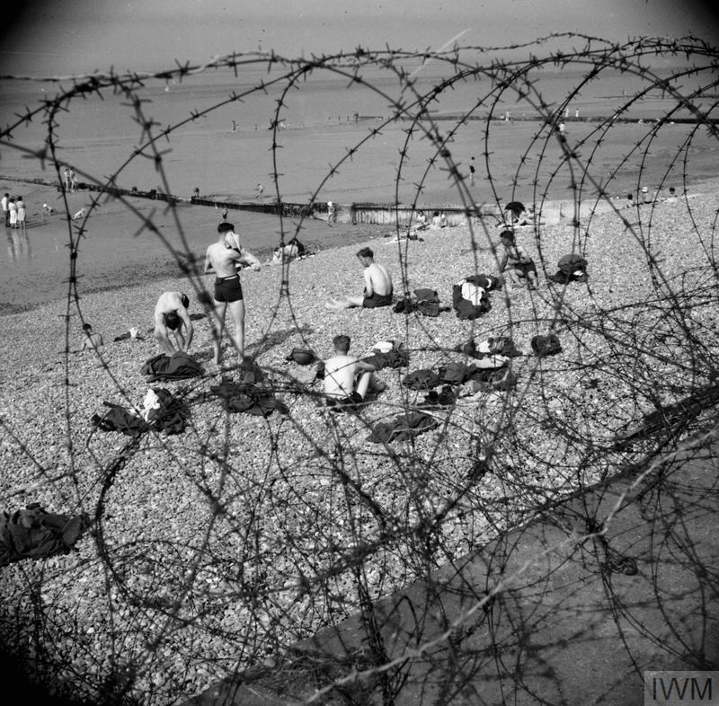 And my last photo (for today at least) from the Imperial War Museum archive (© IWM H 11689), this is a photograph of Sheringham beach which was taken on 12 July 1941 by Captain Len Puttnam. The military had allowed the public to access the beach, but they were present to ensure that they didn’t stray too far, with the men of 2/5th Battalion of the West Yorkshire Regiment overseeing proceedings.