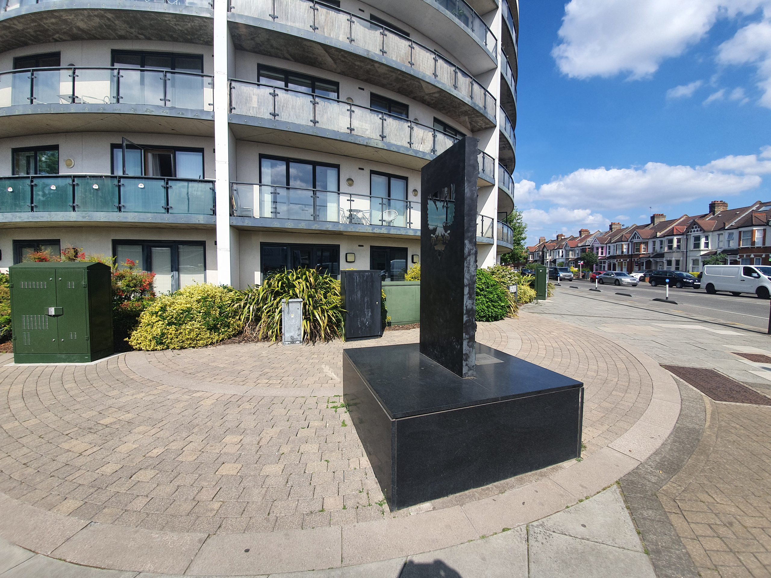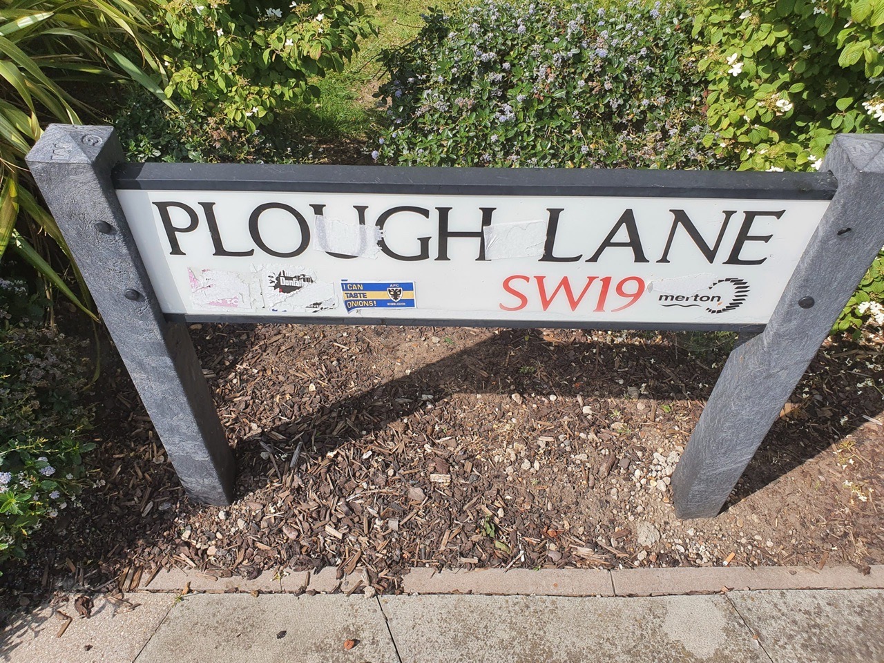 To mark the site of the former ground, this sculpture was placed on the corner of Plough Lane and Durnsford Road in 2010.