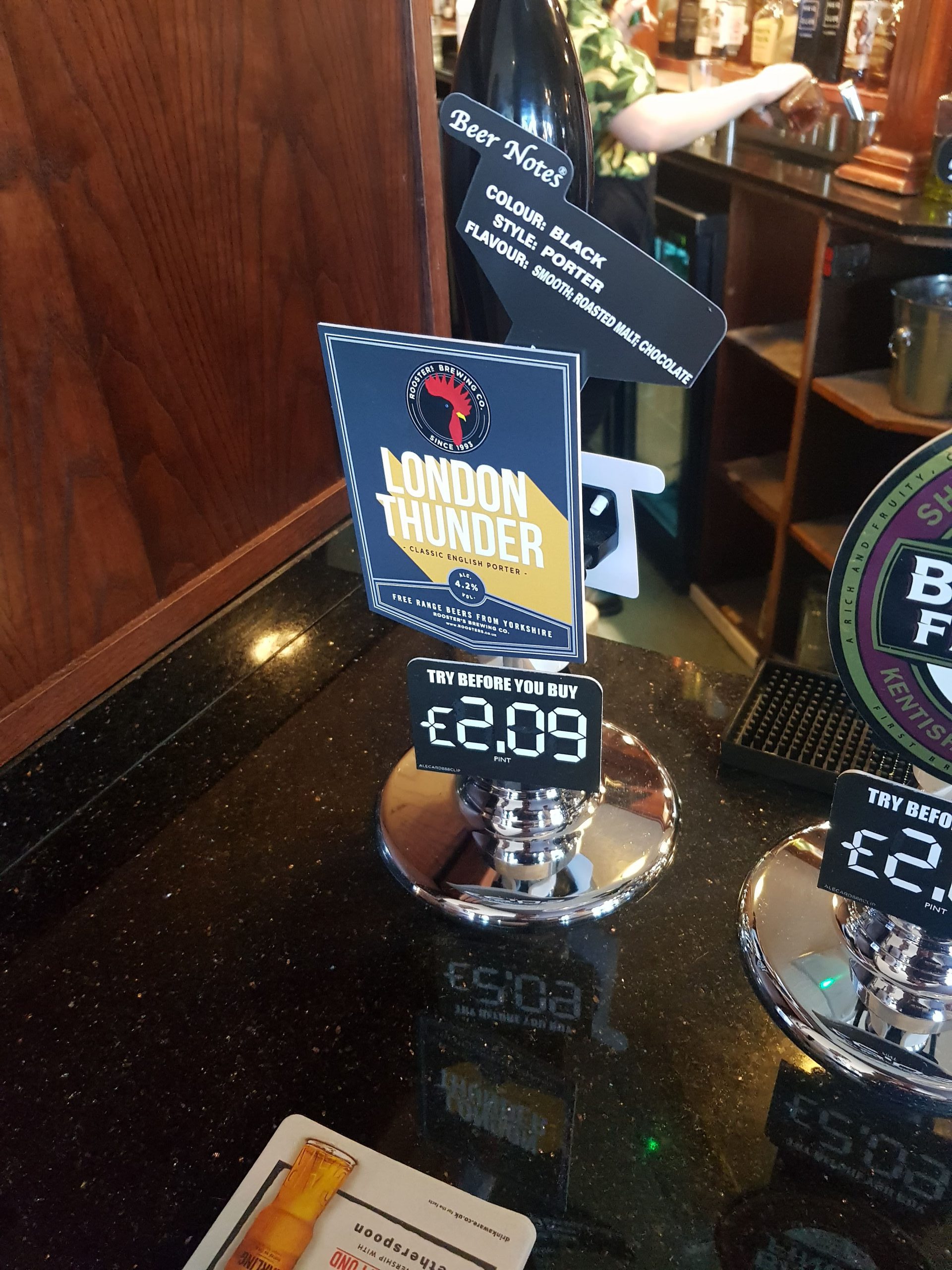 This photo is from a previous visit, the London Thunder which is a chocolately porter from Rooster’s Brewery.