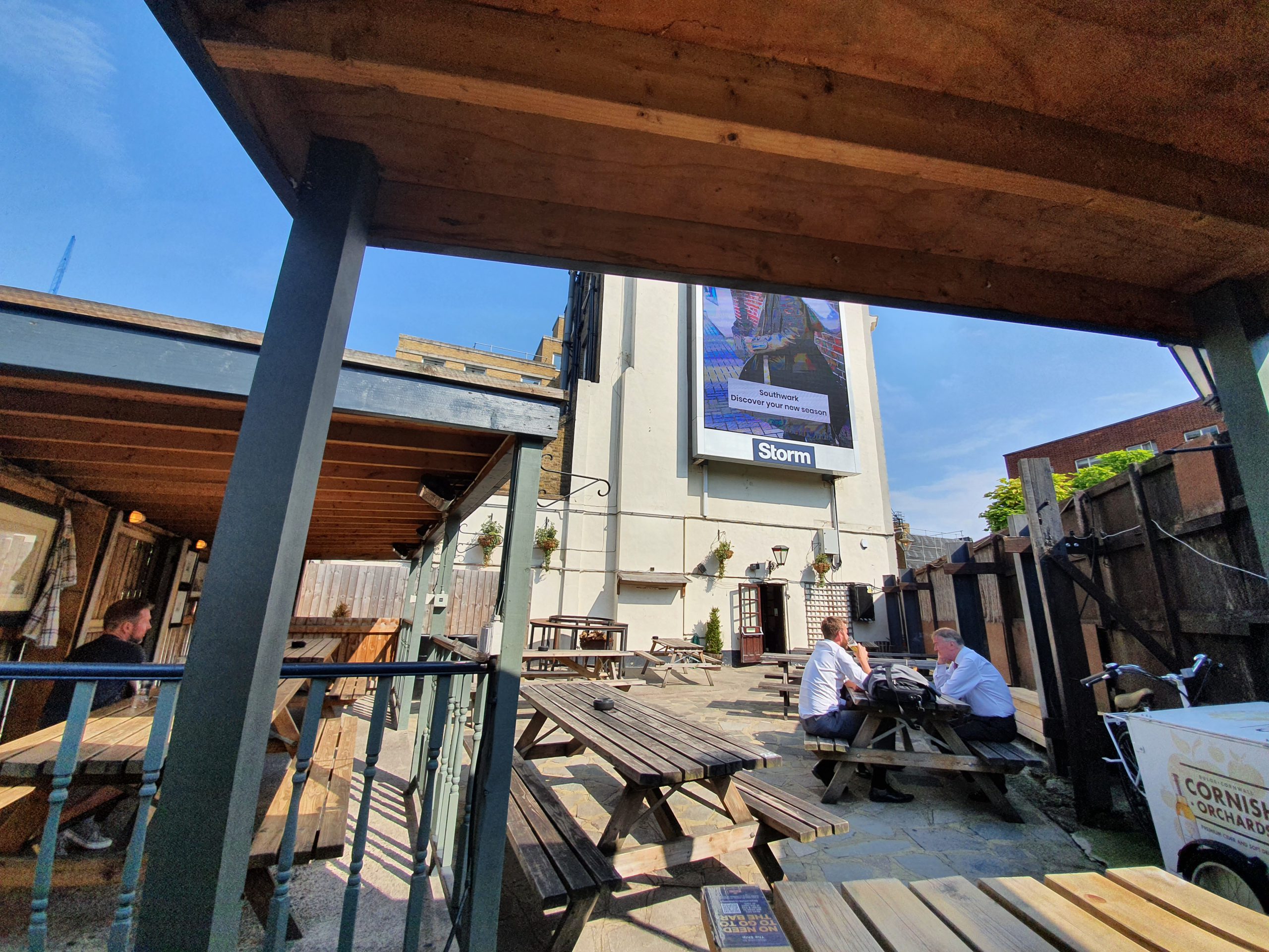 The welcome at the pub was prompt and friendly, with the staff member showing me to a table outside and then explaining the set-up at the pub. Customers could either order at the bar, or scan a QR code to order direct to the table. Everything seemed well managed and organised, with a few different real ales to choose from. Nothing overly exciting in terms of dark options, but I’ve never seen the HSB before and so went for that.