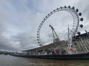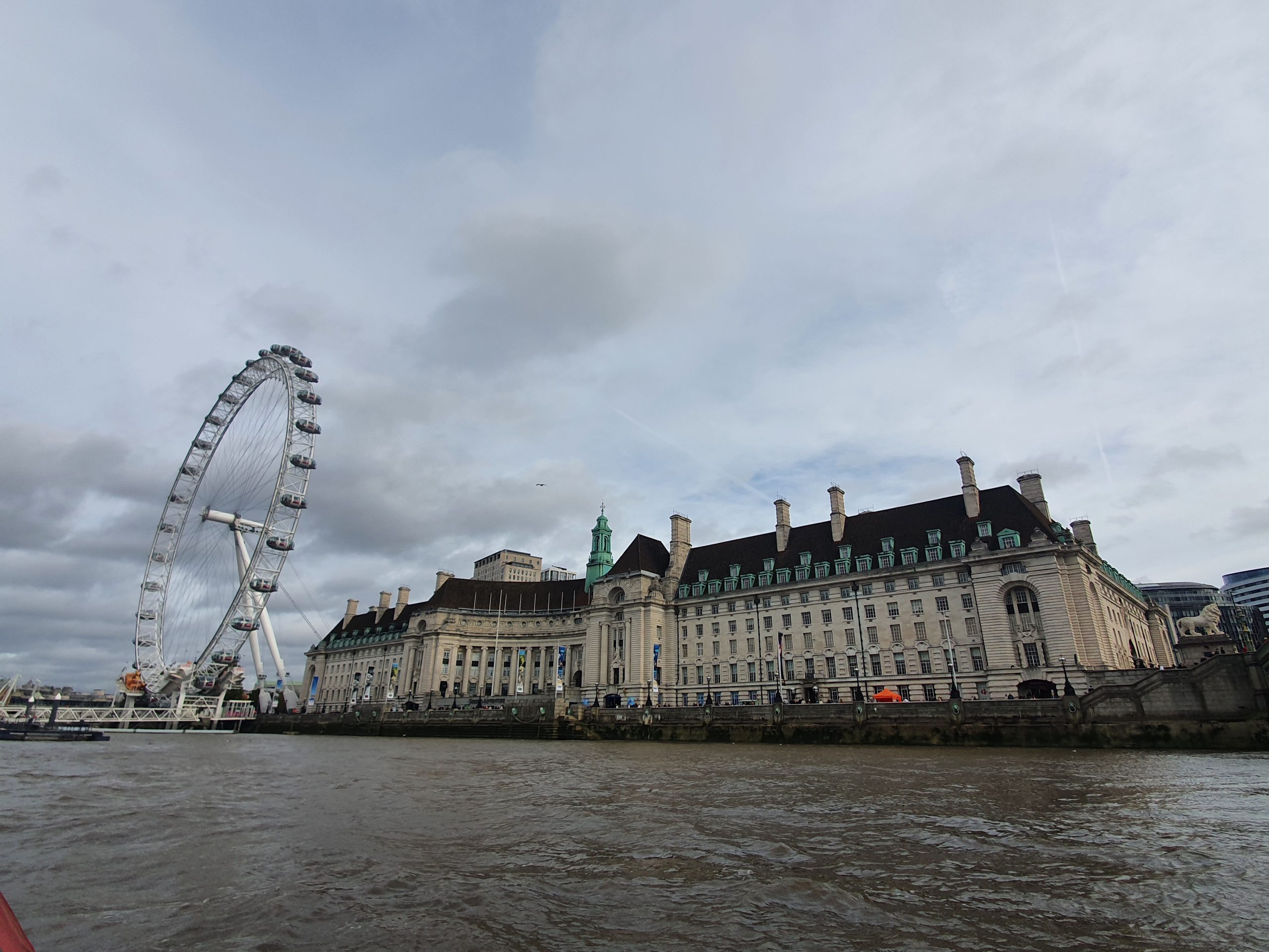 Mostly photos in this post from when four of us had a little ride on the Thames Rocket in London last weekend, something I got with some Virgin vouchers I needed to spend (well, got for my friend Liam and I, the others paid separately as I’m not that generous). After a slight debacle on timing where we got muddled up and had to rush our breakfast in the Liberty Bounds pub (Scott dithered, luckily I had been served first so I didn’t have to rush), we arrived a little early at the pier in front of the London Eye. There’s plenty of clear signage about where to go, even though the pier is used by several different companies.