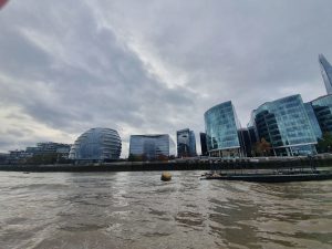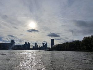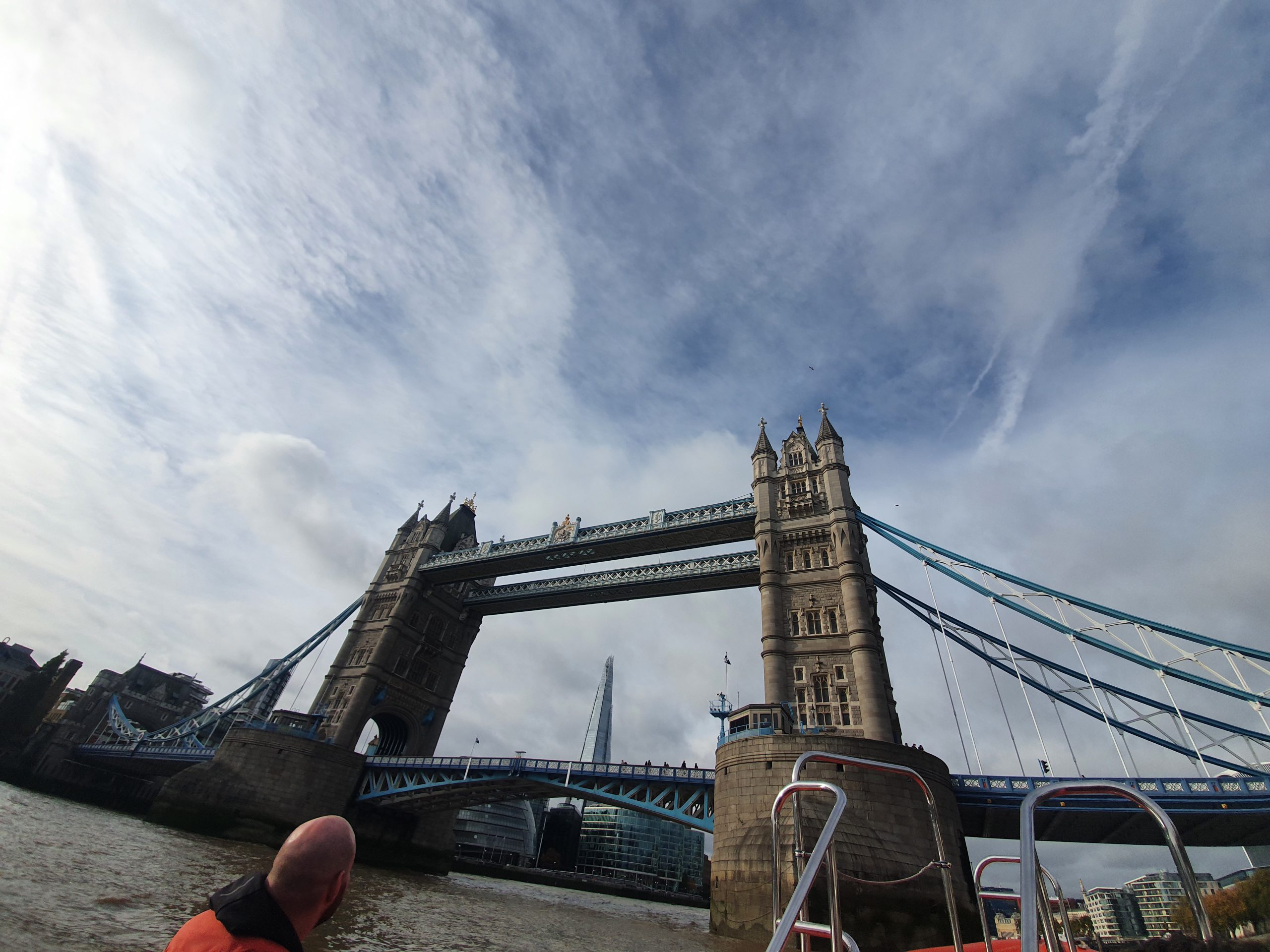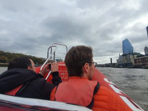 The journey lasted for forty minutes, which included a moderately paced sail to the river down to Tower Bridge before the pace stepped up (apparently the local maritime rules prohibit speedboats from rushing along in the central area of the city). It was never overly scary, although Liam sat there looking at his phone whilst I held onto the bit of metal in front of me, primarily as I’m more risk averse than he is. Scott kept taking videos which required me to look casual and calm, which is never an easy thing when forced upon me…. I took photos on the sedate part of the journey, but I absolutely wasn’t using it when the boat driver was doing twists and thuds (or whatever the nautical terms are) as Liam would have had to spend his afternoon diving in the Thames to recover my phone (I’m sure I would have tried to convince him that this was a sensible idea in that eventuality). The music wasn’t ideal I thought, they could have done with some Wurzels, but it was a different way to see the Canary Wharf stretch of the river.