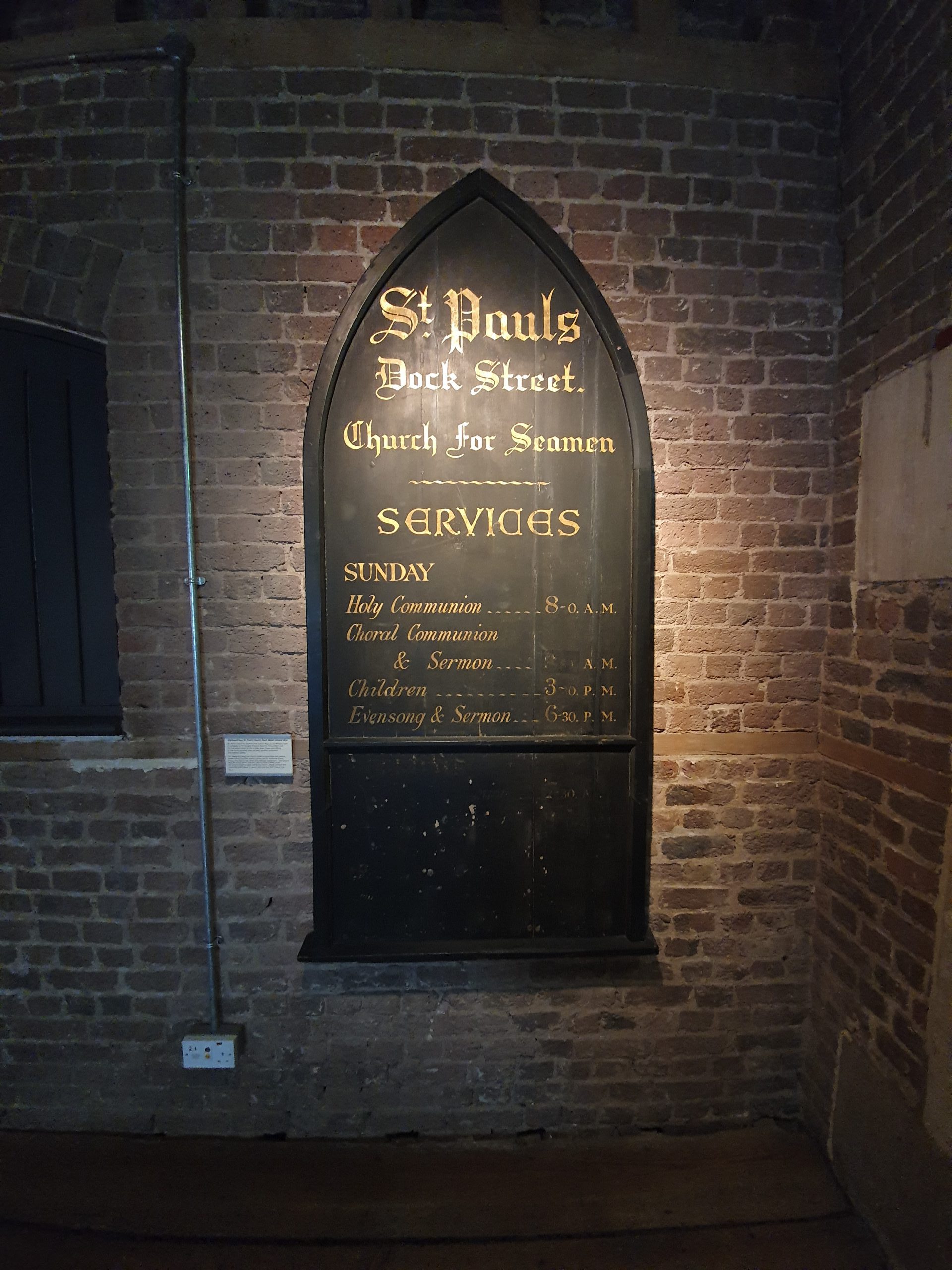 St. Paul’s Church was constructed on nearby Dock Street between 1846 and 1847, designed by William Cubitt & Co. Prince Albert came along to lay the foundation stone and the building was funded by wealthy donors and local seaman, who would have likely had little money. It could seat around 800 people and the church became an important part of the local community, trying to offer charity and guidance where it could.