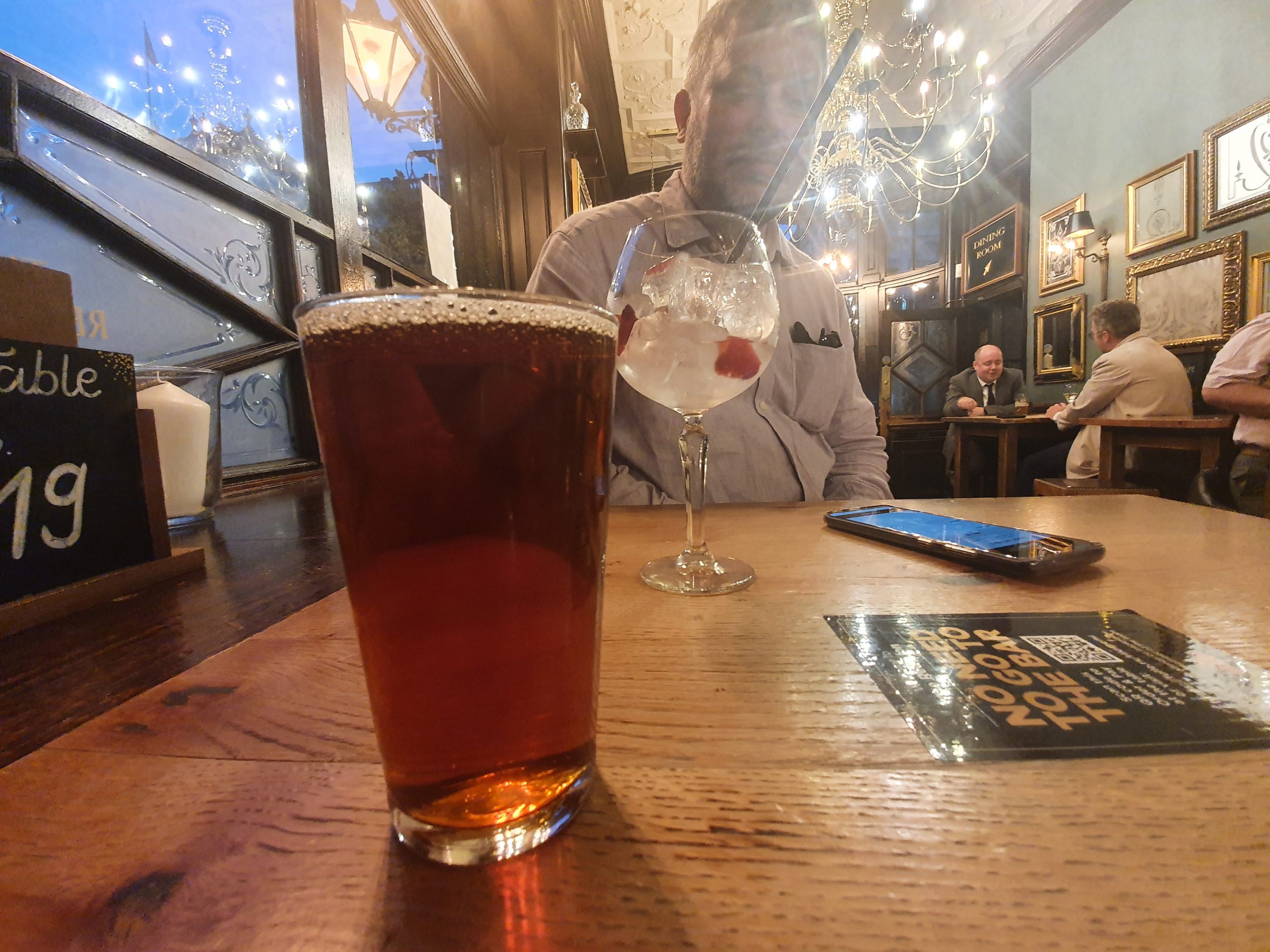 The staff member was clearing the external tables away when we arrived, so I thought they were closing just before 22:00. He welcomed us in though (I was with Richard, who is in London for more of his decadent purposes) The pub wasn’t busy, there were a grand total of three people in it.