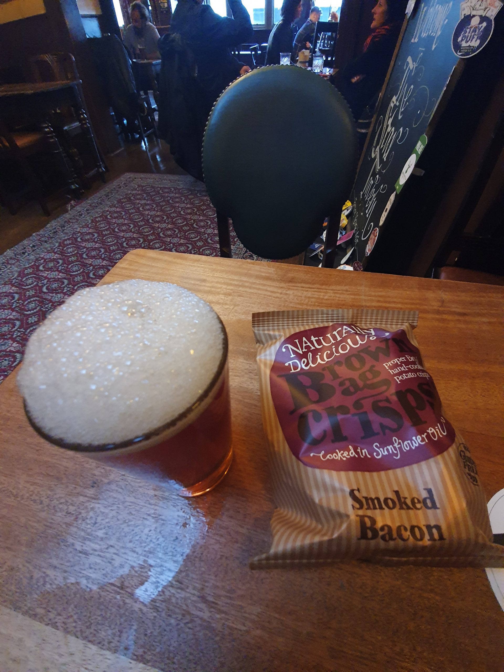 The half pint of ESB and bacon crisps, reasonably priced for the location, and the beer was everything it should be in terms of the taste and temperature.