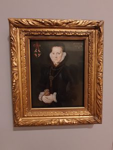 This painting of Elizabeth Roydon was completed in 1563 when she was aged 40. The artwork was painted by the Dutch-born Jan Eeuwowts, better known in English as Hans Eworth, and there are over 40 paintings by him that have survived. It’s not known for sure, but it may have been that Eworth was the court painter during the period of Queen Mary I’s reign between 1554 and 1558. Roydon was wearing all black as her second husband, Cuthbert Vaughan (1519-1563), had just died in a military engagement in Le Havre in France. She was though later to remarry a final time, to Sir Thomas Golding in 1564.