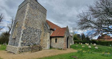 This is one of my more niche posts (although, to be honest, I’m not sure that any are particularly mainstream or useful), but I was interested walking along Edge’s Lane as the road clearly went a bit askew. It transpires that the end section into Long Stratton has been rerouted, with the old road now being used as a footpath.