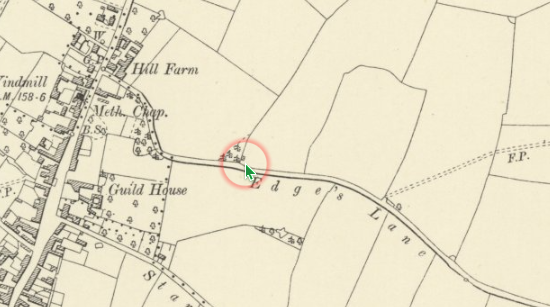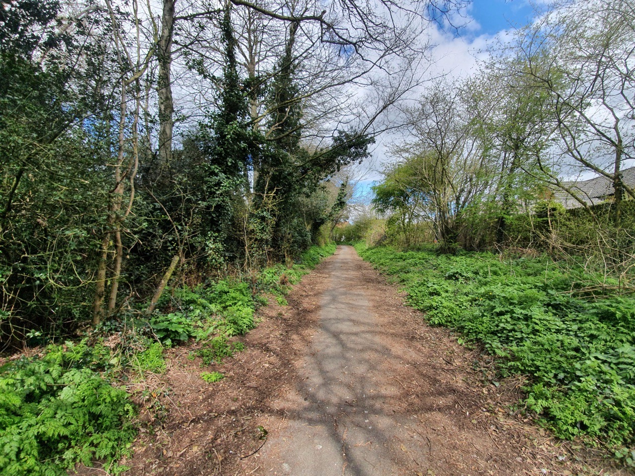 Where Edge’s Lane used to join the main road, with the white stop sign still being visible, even though the road has been closed off for well over a decade.