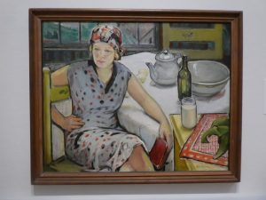 Painted by Ruth Peabody in 1925, this painting is apparently showing a pensive looking women planning what meal to cook. Peabody gave the painting to Laguna Art Museum in 1966 and I liked the pose and look of the woman in the artwork. Although, as ever, I’m confused as to why the items on the table are painted in what I consider a clunky way which is out of perspective, but I’m sure it’s very artistic indeed.