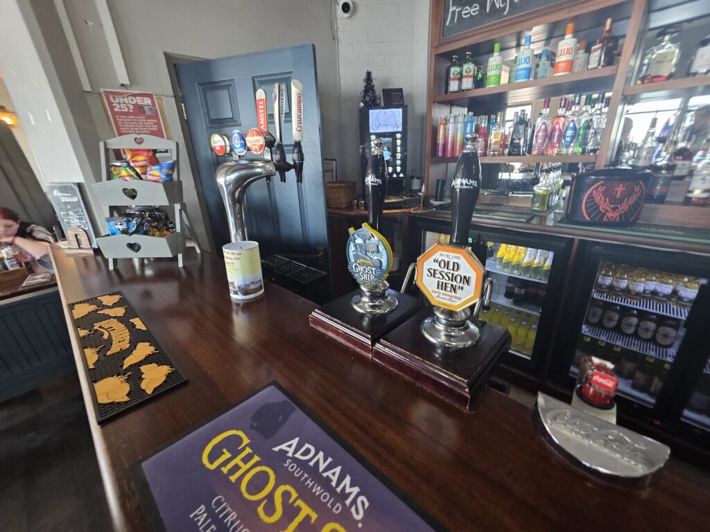 Back to the venue, where there was a friendly welcome from the team member. There were two real ales available, the Ghost Ship from Adnams and the Old Speckled Hen from Greene King. There didn’t seem to be any keg of interest, just the usual generic stuff.