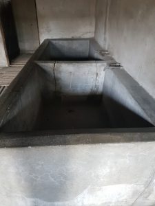 The prisoners would walk along the wooden slated floor before being herded out of the room. It seems that later on during the war the prisoners were given the opportunity to take more showers to try and get rid of the problem of lice, although since the living accommodation was riven with them it seems a slightly forlorn exercise.