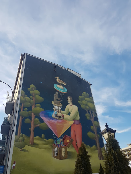 I know very little about street art, but this is apparently by Interesni Kazki and was painted in 2012. It certainly livens up the end of the buildings on this street in Lublin.