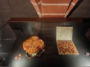 I can’t see that I was overly excited by amber which has been turned into other things, but this was quite impressive. It’s some sort of solitaire game on the left dating from the eighteenth century and on the right are chess pieces dating from the first part of the eighteenth century.