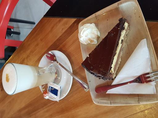 A latte and slice of cake, all well presented. The cake was dark chocolate orange, with a suitably rich flavour as could be expected. The price wasn’t too bad, a little over £4 for both the coffee and cake. The service was efficient, if not particularly engaging, but it was a clean and comfortable environment.