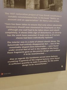 Gozo’s museum of archaeology is located inside an historic house, the Casa Bondi, just inside the walls of the Cittadella. Care was taken with the restoration of the building, which has been sensitively renovated and retains some architecturally interesting features. The museum was originally opened in 1960 as a general museum and has specialised in just archaeology since 1986.