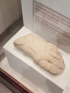 This is the life-sized foot from a Roman statue and the stone was found inside of a wall inside the Cittadella.