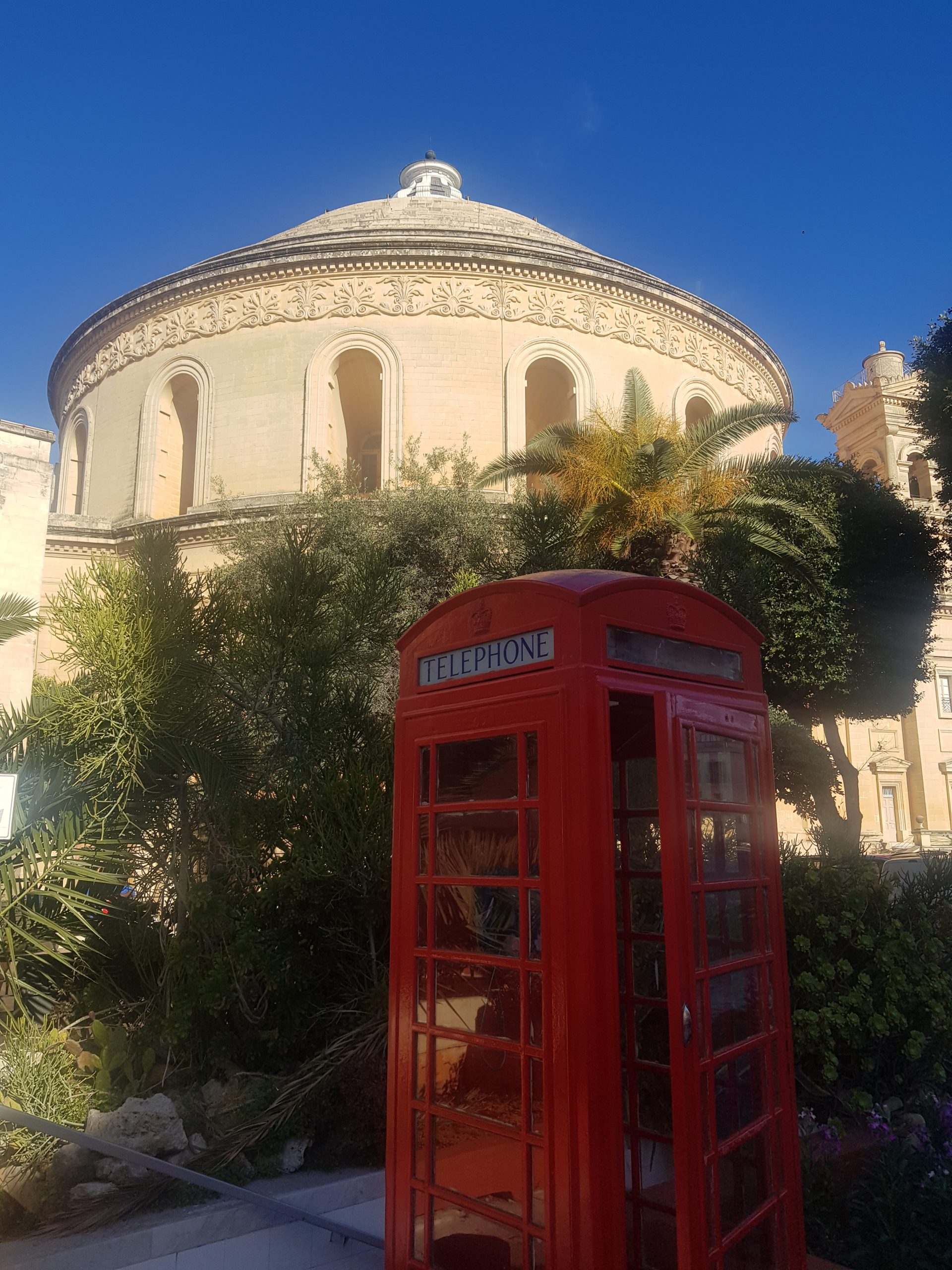 A phone box in front of Mosta rotunda. We had a longer wait than expected here as the bus was delayed by around 25 minutes, but there are worse places in the world to have to wait. I’d add that we waited near to the phone box, not in it, obviously.