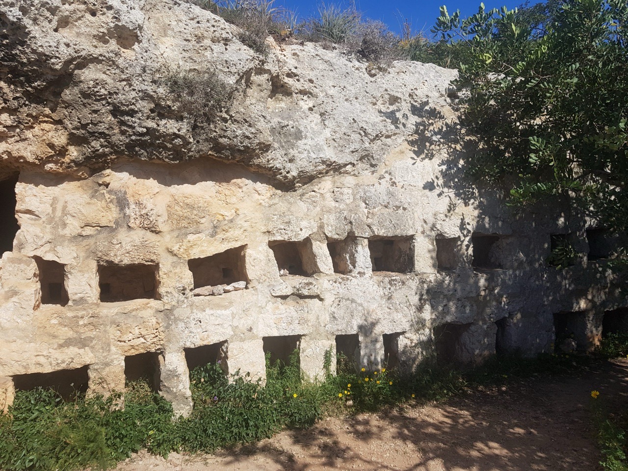 I had seen this apiary last year, but there was another one I hadn’t seen before, situated behind the oldest carob tree on the island. We had a look at the punic tomb although the peace and tranquillity was just a little marred by someone recording themselves playing some music….