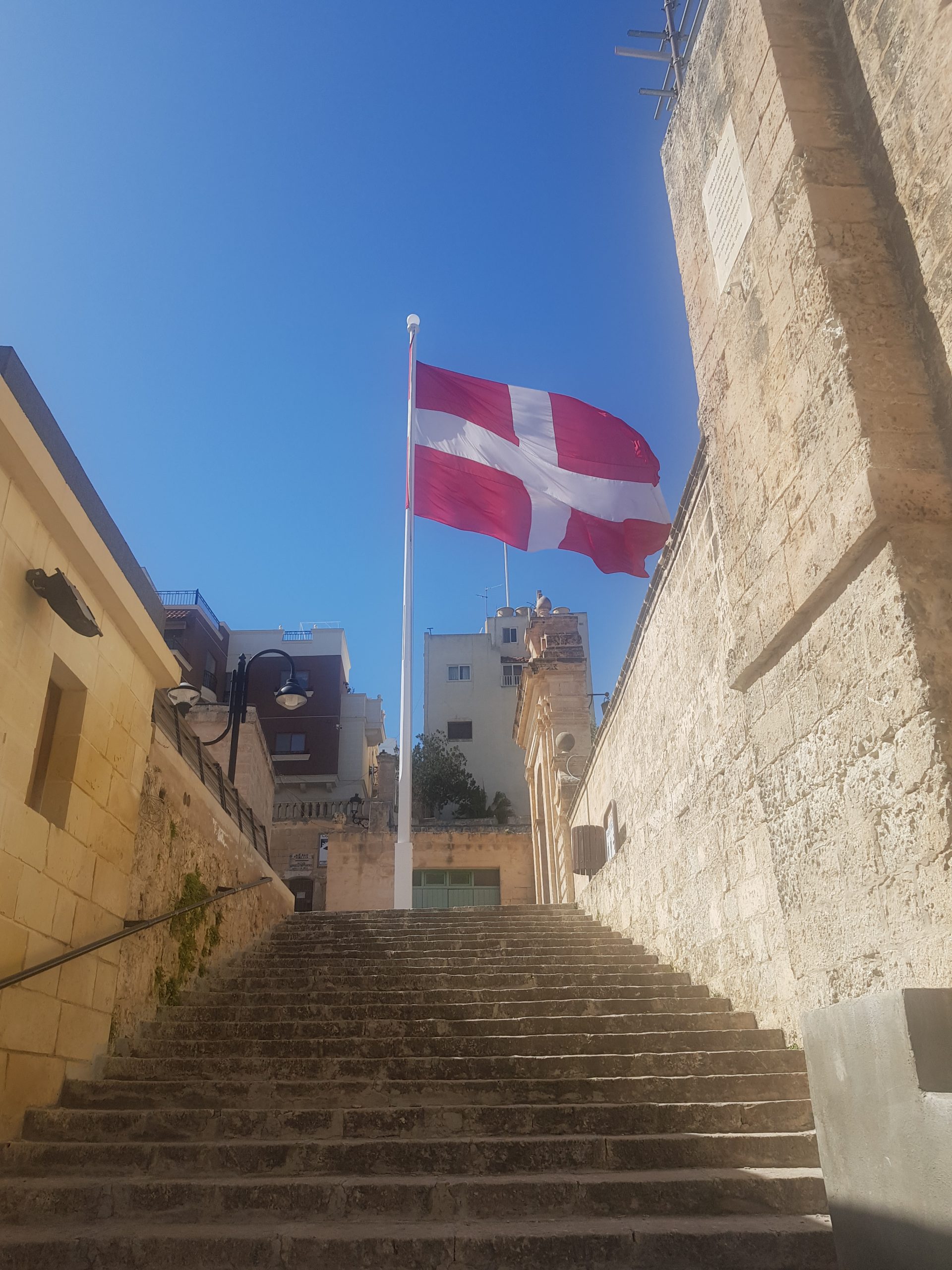 The Maltese flag flying high.