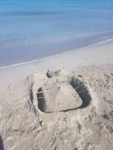 And talking about interesting structures, we didn’t create this, but we did watch the water flow into the moat and it was rather professionally created by someone…. Just to show how busy we had been in the morning, I had a little lie down near the beach to have a short nap. After that we had a little visit to Sundancer in order to get an ice cream and drink. I’ve had worse Sundays…..