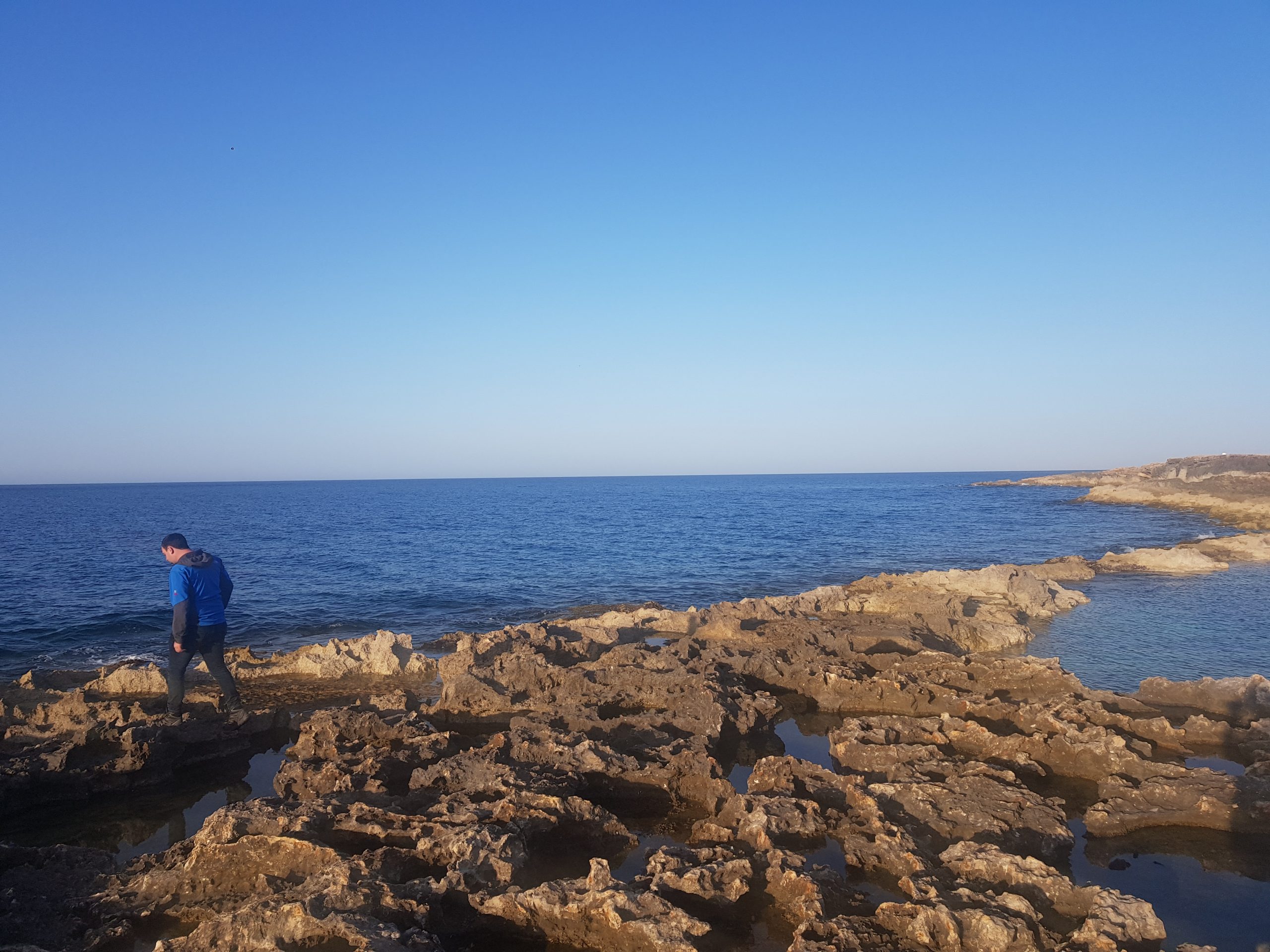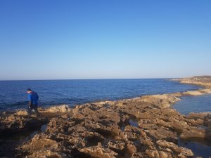 Exploring the beach at Qawra Point Beach near Bugibba. Liam did try and make the jump to the piece of land on the right of this photo, but he claimed it was too difficult. Then we watched someone else go and do it…. I didn’t comment on how much braver the other man was than Liam, as I was too polite and kind.