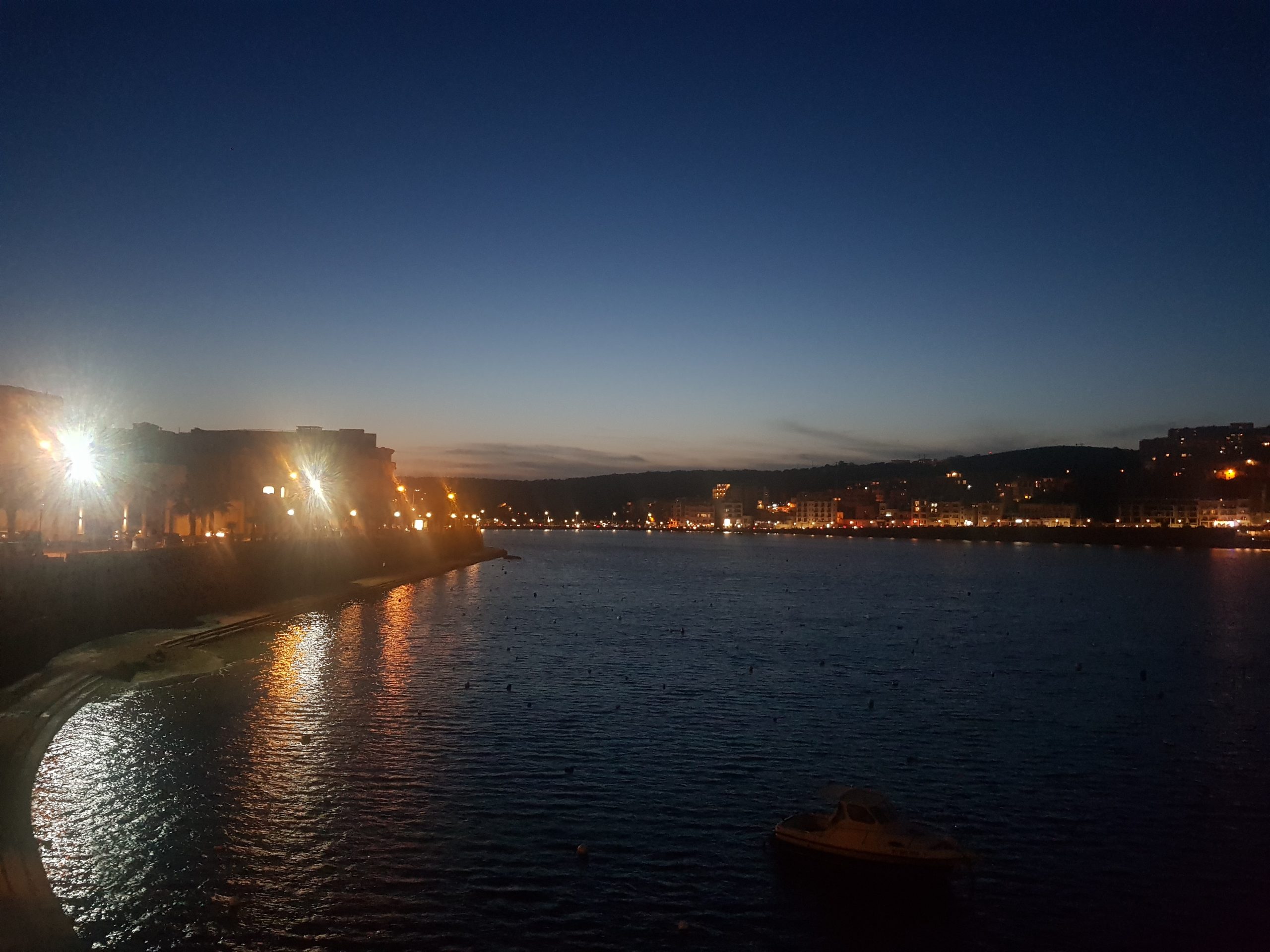 Walking along the coastline at Bugibba as the sun started to set. After all this walking we quickly popped to McDonald’s for a drink, with the handy advantage that we got free fries after I filled in the restaurant’s survey. Bargain.