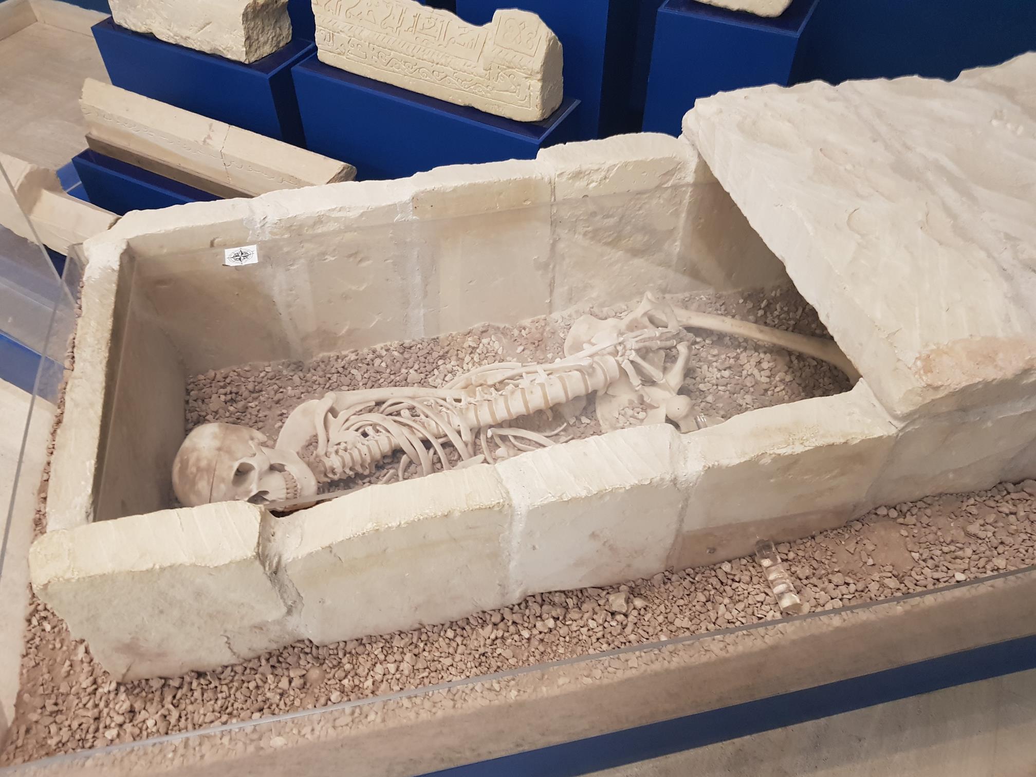 A skeleton which was found on the site from an Islamic cemetery built around the ninth century AD. The cemetery was built around the former Roman buildings and numerous Islamic gravestones have been found.
