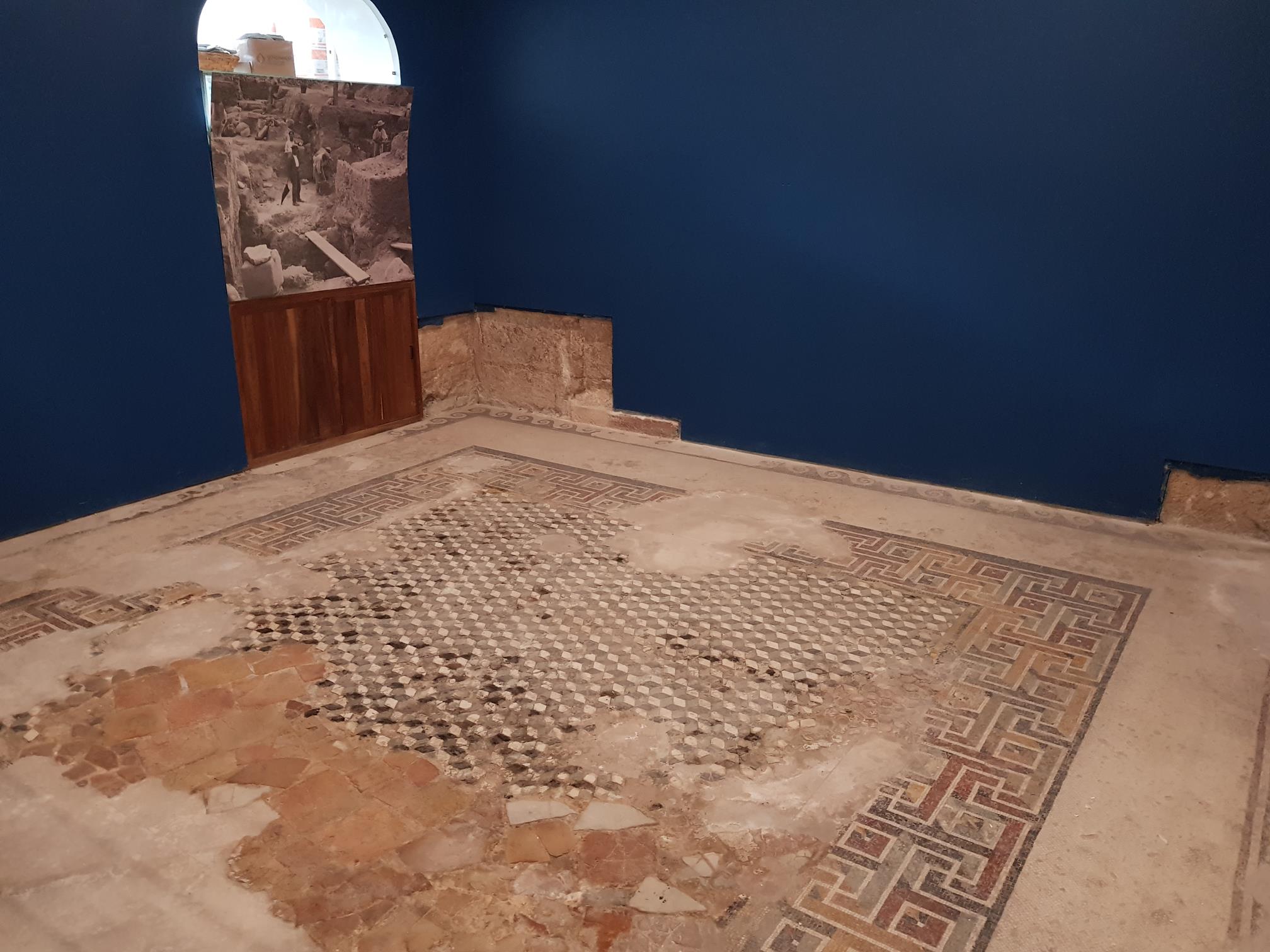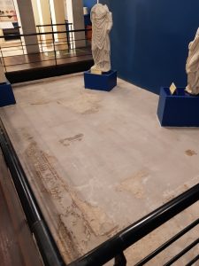 This is the tablinum, so could have been used as a reception room or study. There have been some fairly crude repairs to the mosaic floor during the later Roman period which look like I’ve done them.