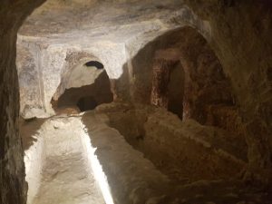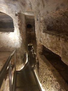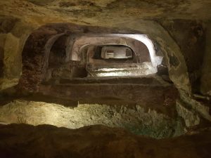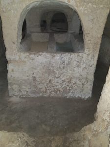 This is graffiti that I think dates to the Second World War when these catacombs were used as air raid shelters. I thought initially that it might be relatively tolerable down here, but most of the stone feels damp to the touch, so it couldn’t have been very pleasant.
