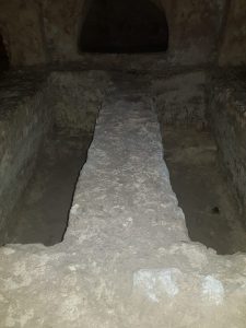 I’ve seen two explanations given for these circular tables, of which there are several throughout the catacombs. The first is that they are tables where individuals would come for a final meal, as part of the ceremony after burial when the individual was laid to rest. The second is that they were used for an annual Roman ritual of celebrating the dead, but it’s probably the case that both are true.