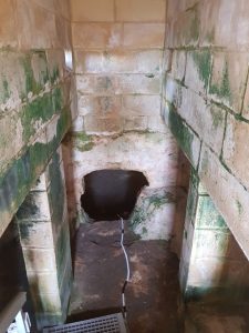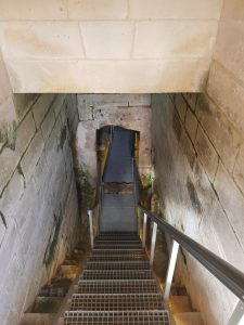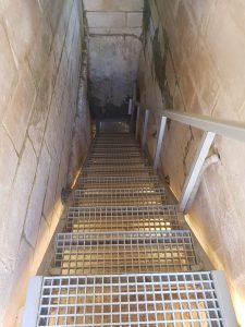 Nearly all the access points have metal steps, which have been inserted over the top of older steps, which are mostly quite worn. This part was inaccessible and so there are just the old steps.