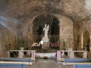 Sitting in a pool of naturally flowing water, the statue of the Madonna holding the baby Jesus. There were reports in 1887, 1888 and 1948 that the statue was seen moving her right hand in the shape of a cross, and the site has long been a destination for pilgrims.