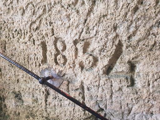 Graffiti marked into the stone near to the entrance, dating back to 1834 (unless someone more recently just etched in an incorrect date).