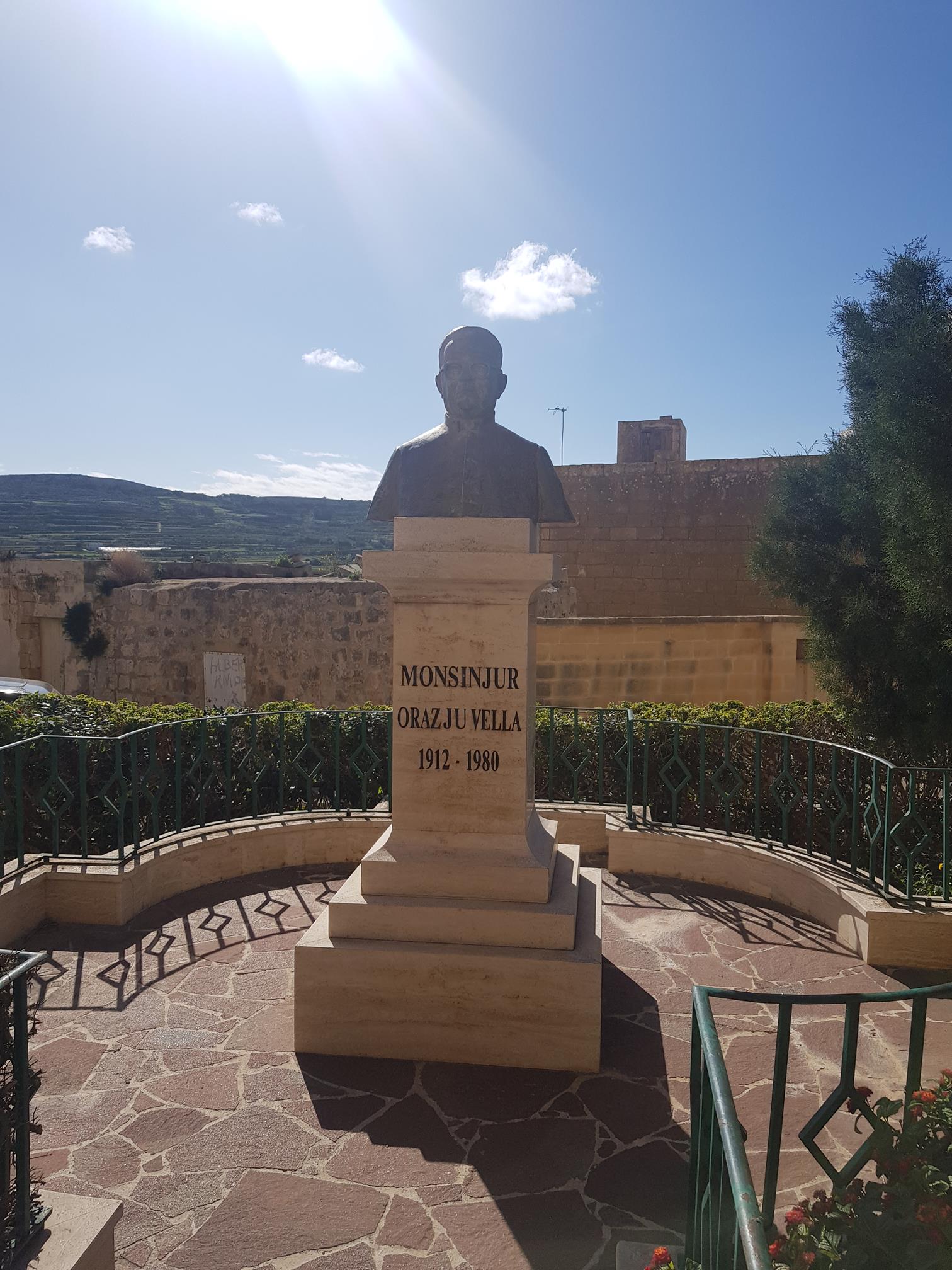 In my occasional series about people represented on statues, I had hoped to find out more about this individual. All I know is that he lived from 1912 to 1980 (that bit was easy to work out) and he came to serve the church in Mgarr in 1954. Beyond that, I couldn’t establish much, but I’m guessing that he was a popular local member of the Catholic Church.