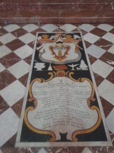 One of the elegant tombstones on the floor of the church. I say (well, type) church although it was elevated to the status of a minor basilica in July 2018.