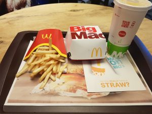 A Big Mac meal, which I’m delighted to say tastes exactly the same as the ones throughout the rest of Europe. Isn’t globalisation marvellous…..