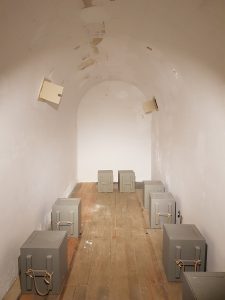 This is the room where the British stored gunpowder. Unsurprisingly, the British military didn’t want any little incidents involving gunpowder, so they kept it nice and safely in this room. Next to this room is a little lobby area where those men dealing with the gunpowder would have to change clothing as their uniform and boots might be “contaminated”. They would change into white clothing and canvas shoes, with absolutely no metal present, before they could play about with the gunpowder. The boxes in the storage room would be made of zinc and there was a glass and brass panel between this room and the shifting lobby.