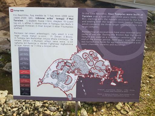 The Tarxien Temples are four megalithic structures which were constructed between 3600 and 2500BC, although were then repurposed between 2400 and 1500BC. The map above shows just how complex the structures are in their size and layout.