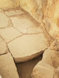 This is the floor of the temple, made from thick stone and so not just the compacted earth floor that might otherwise have been expected.