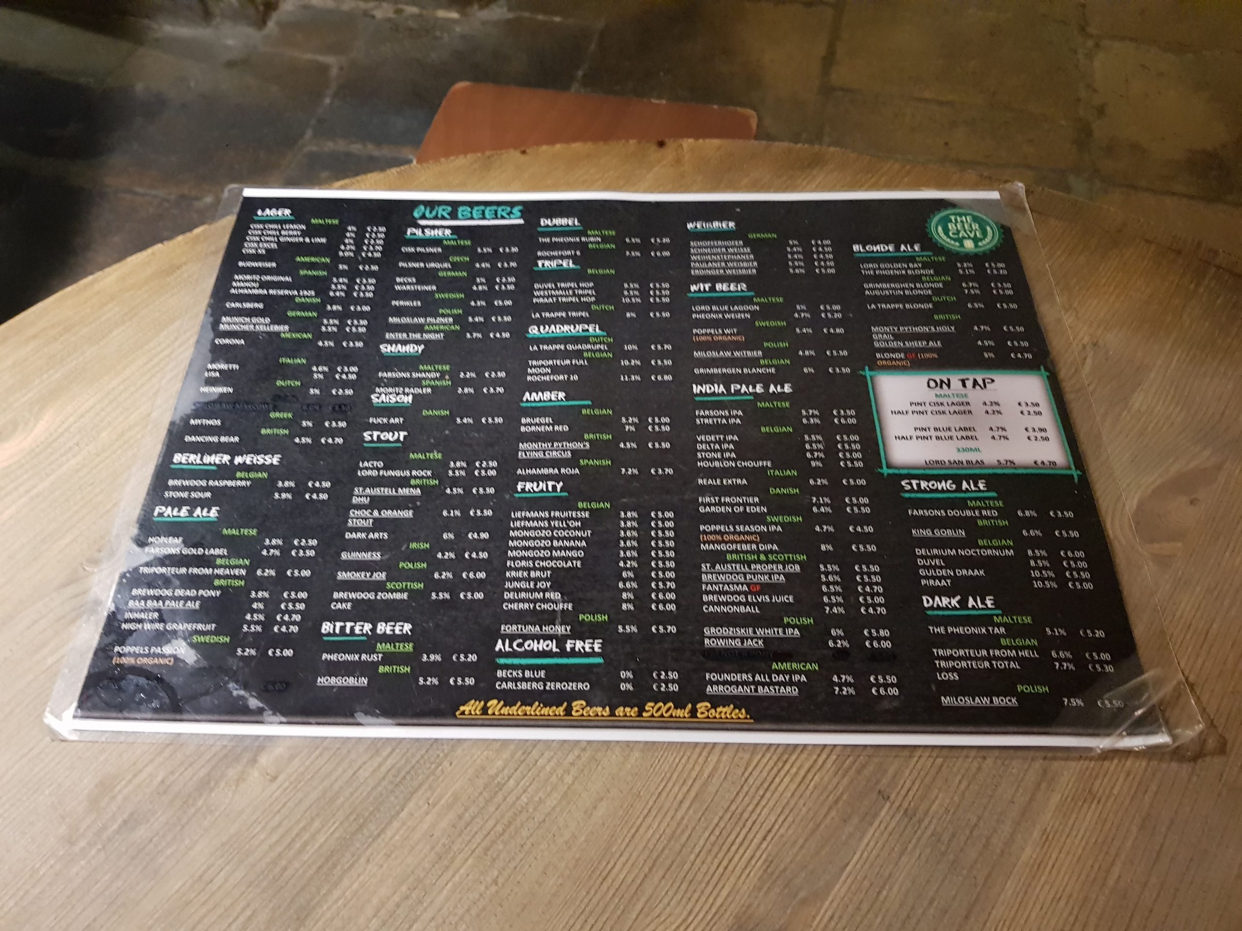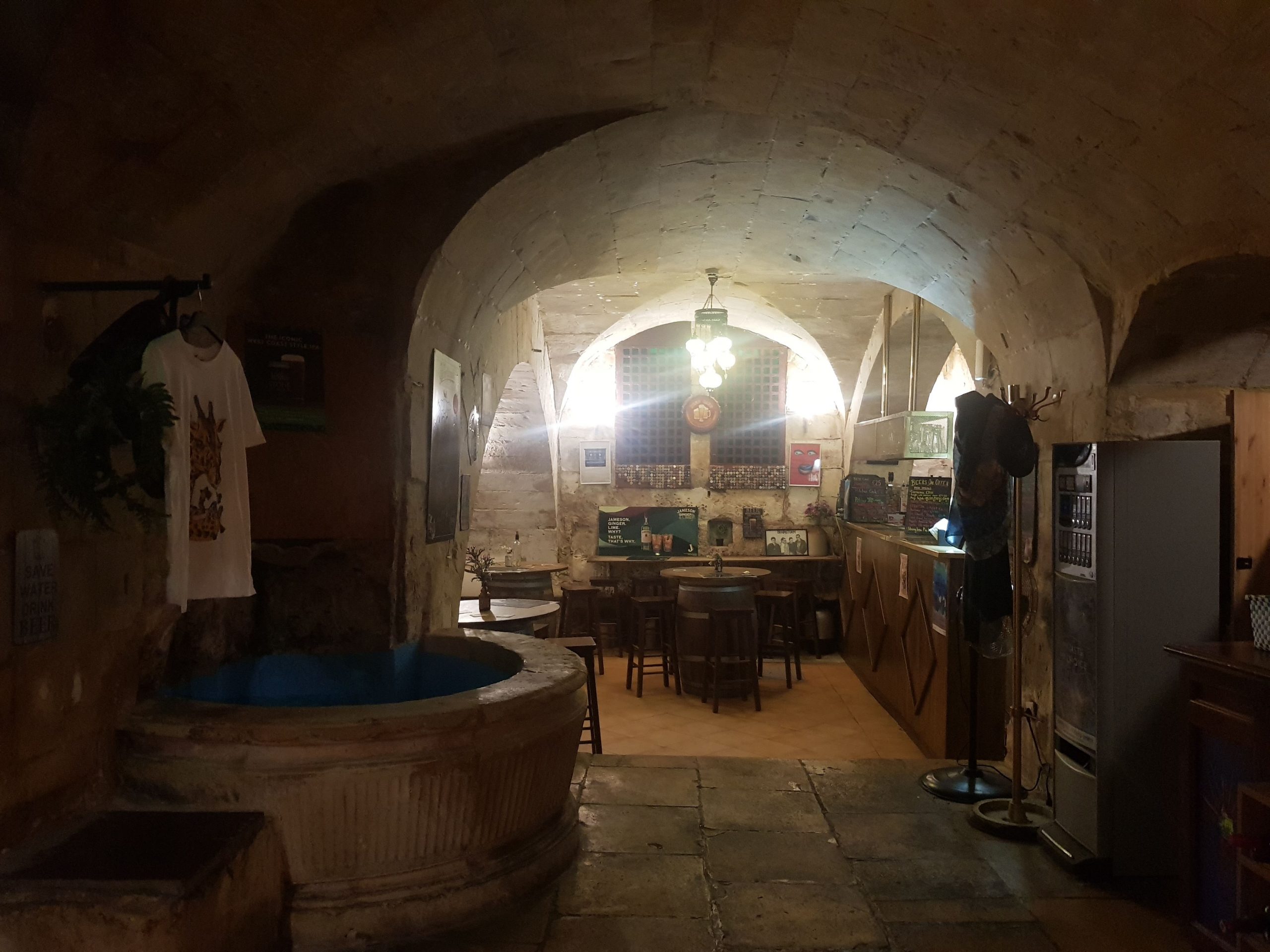 There aren’t a large number of craft beer bars in Valletta, or indeed in Malta, so it wasn’t too onerous a challenge to try and visit them all in an evening. Liam and I were certainly brave and courageous in our endeavours. The first one of the evening was the Beer Cave, located under the Castille Hotel in the heart of the city.