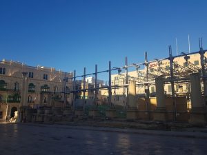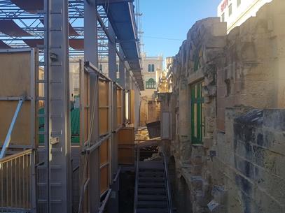 The new open air theatre structure has been placed inside the original walls without impacting on them. The new building has been controversial as there were numerous suggestions as to how the site could have been redeveloped, but it is now known as the Pjazza Teatru Rjal.