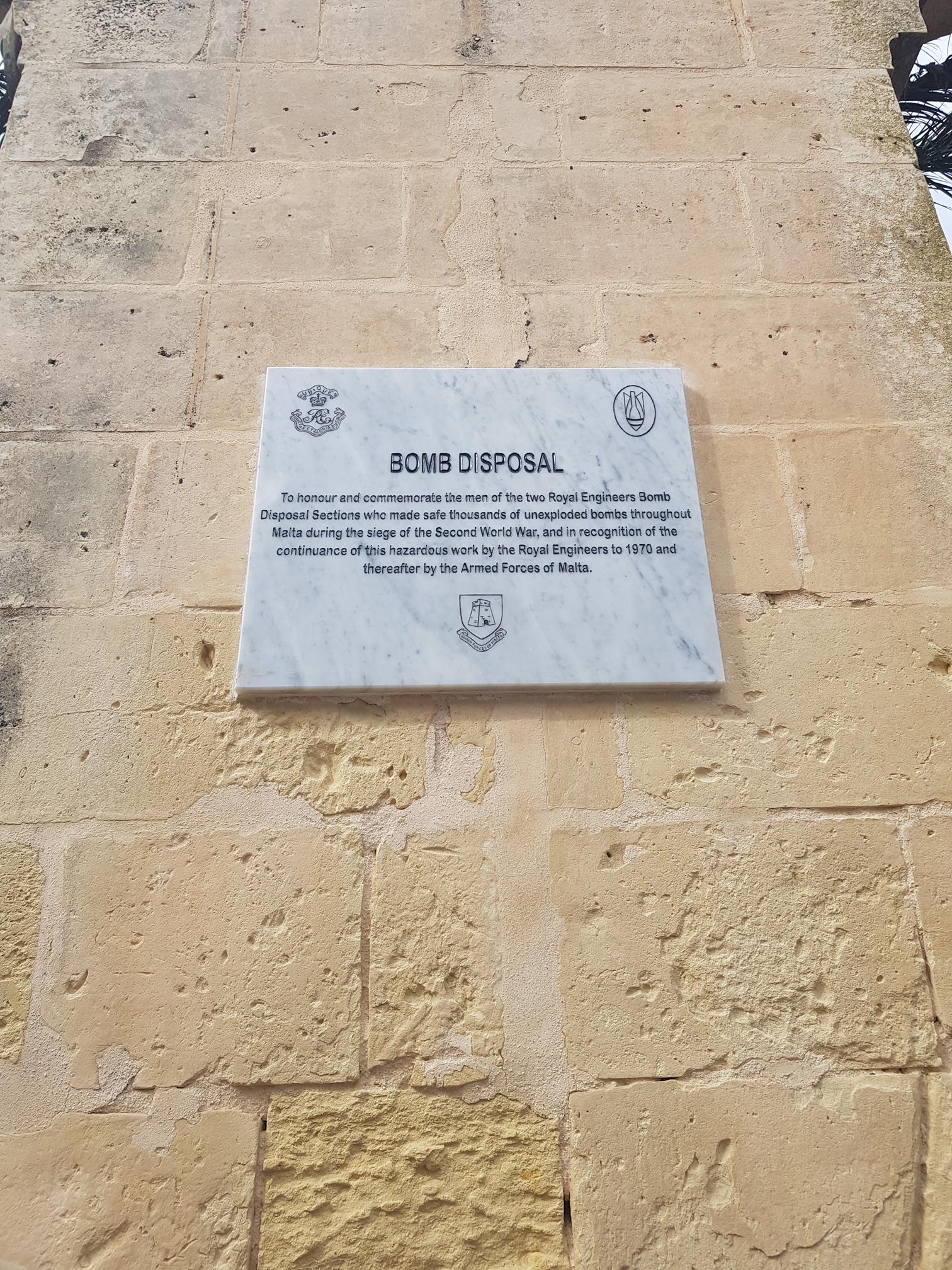 This plaque is located in Upper Barrakka Gardens and I can imagine that this is well deserved, the bomb disposal teams must have been enormously busy during the Second World War. More bombs were dropped on the islands than were dropped on London and the attacks were relentless for years. The plaque is also relatively new, it was unveiled by Joseph Muscat, the country’s Prime Minister, in 2017.