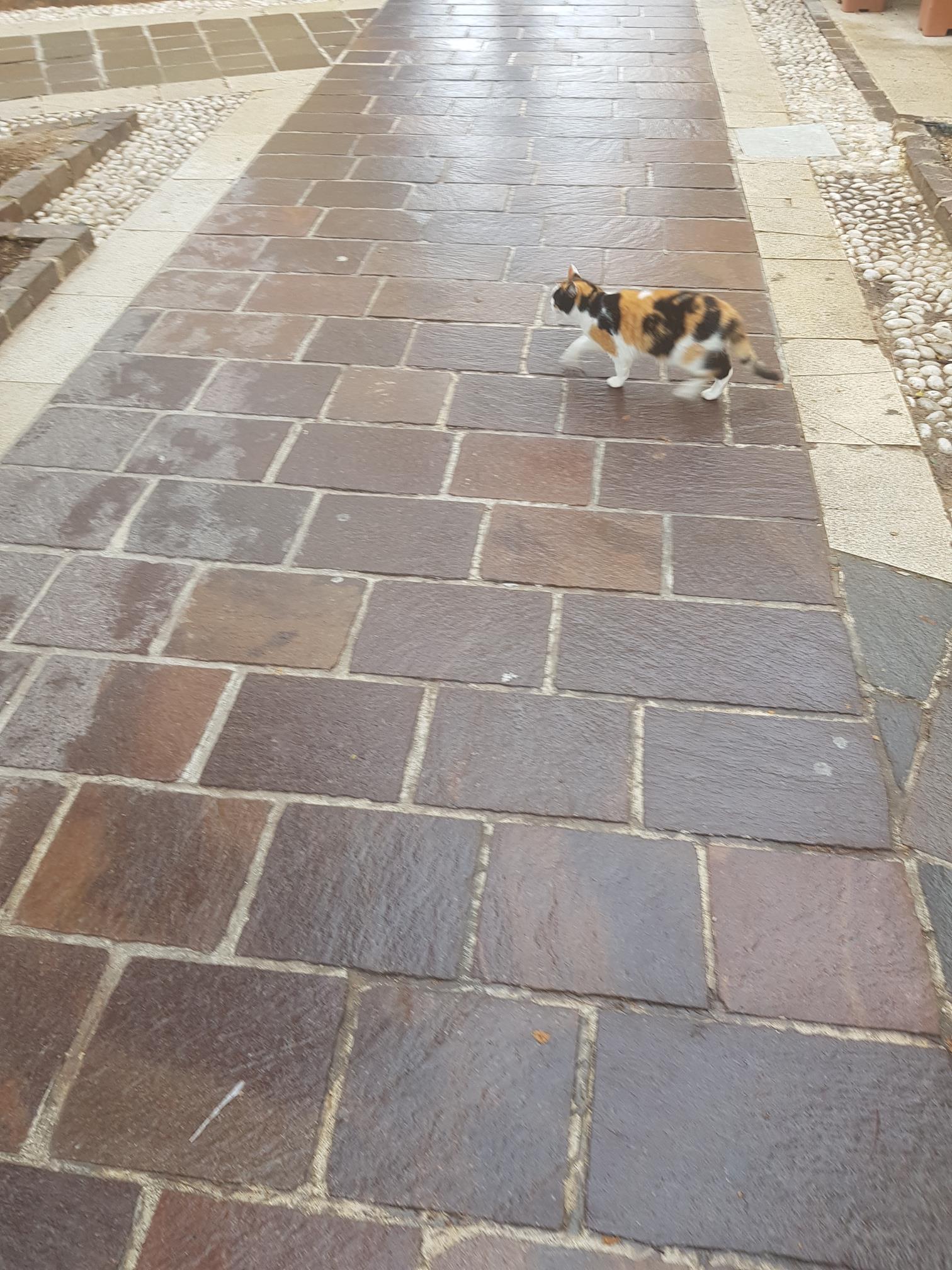 And here’s another photo of a cat, meandering around in front of the plaque.