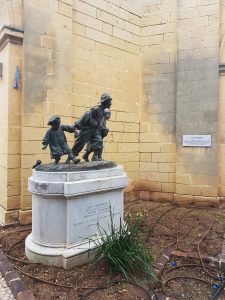 This is a copy of the statue that was once held here, but which is now in the National Museum of Fine Arts. The original was displayed in Rome and Paris before coming to Malta in 1907. It’s by Antonio Sciortino and shows three poor street children.