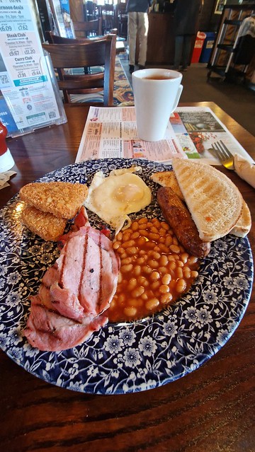Another traditional breakfast and unlimited coffee, coming to a total of £4.18. Egg was a bit hard and the toast was cold, but I can’t much complain given the price. The new area manager was in the pub today, one of the customers wanted to ask her about beer mats but didn’t dare. I decided not to get involved. Service at the pub was friendly and everything seemed clean and tidy, although the temperature was quite cold (although just right for me) and they had some customers huddling around the real fires.