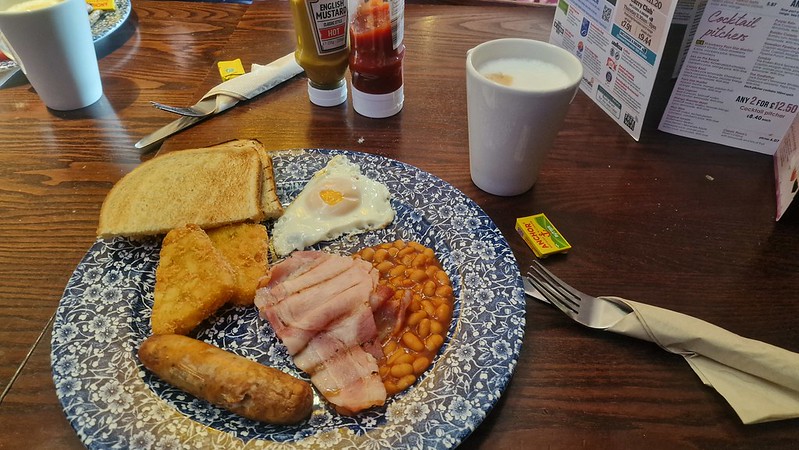 The pub felt a little generic in terms of the building, it’s not historic and so there’s a limited amount I can imagine they could do. The service was though friendly and we were able to sit near to the coffee machine and also near a power point, so that was a win as far as I was concerned. I don’t get out much….. The breakfast was as expected, I’d like crispier bacon, but I’m not going to complain when the breakfast is Β£3 and especially when I got a runny egg just as I like it.